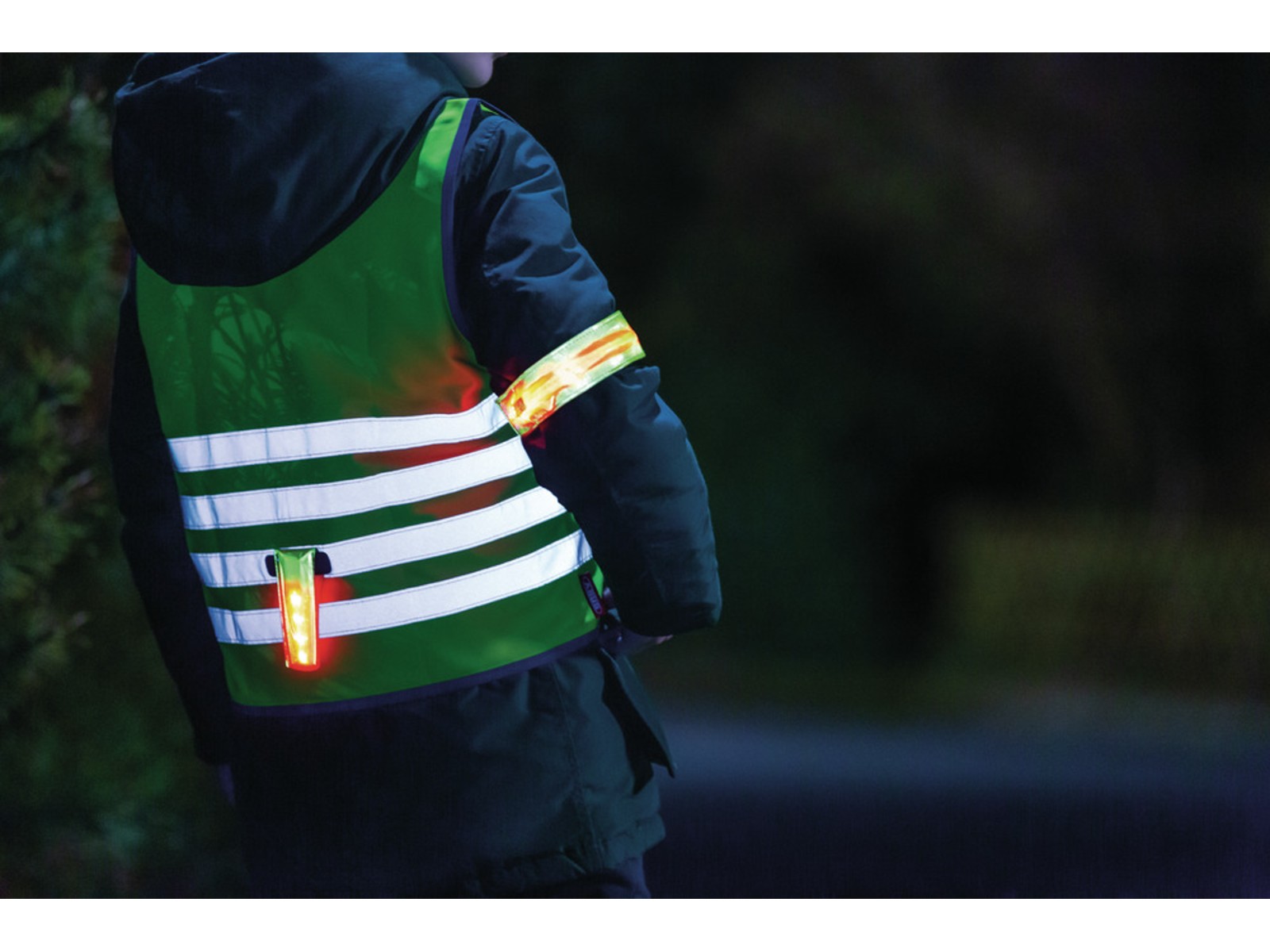 Unser LED-Armband Lumino Active Bar kann an Hosenbeinen oder Jackenärmeln befestigt werden und Ihre Sichtbarkeit im Straßenverkehr deutlich erhöhen.