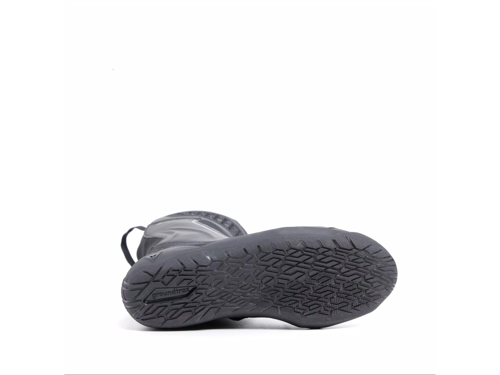 Die Sohle besteht aus Groundtrax® mit spezifischer Mischung und Mustern, um maximale Stabilität und Grip auf verschiedenen Terrains zu gewährleisten, während das Obermaterial aus Mikrofaser mit großen elastischen Stoffeinsätzen hergestellt wird, um extreme Leichtigkeit und Komfort beim Gehen zu garantieren. Die Sohlen sind asymmetrisch und richten sich nach den am Motorrad verwendeten Hebeln.