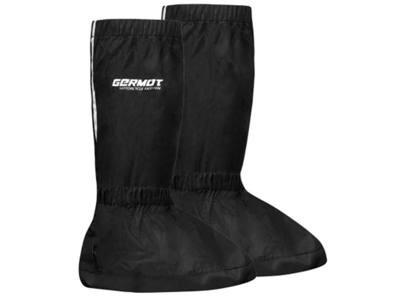 Die Germot Regen-Überziehstiefel Chio in der Farbe schwarz bieten optimalen Schutz für deine Motorradstiefel bei schlechtem Wetter. Gefertigt aus 100% wasserdichtem und winddichtem Polyester-Material verhindern sie zuverlässig das Eindringen von Nässe und Kälte – ideal für Fahrten bei Regen oder starkem Fahrtwind. Der seitliche Reißverschluss mit zusätzlicher Klettabdeckung ermöglicht ein schnelles und unkompliziertes An- und Ausziehen, während der integrierte Gummizug für einen sicheren Sitz sorgt und das Hochrutschen des Stiefels verhindert. Die verstärkte Laufsohle sorgt für zusätzlichen Halt und Strapazierfähigkeit, auch bei kurzen Laufwegen abseits des Motorrads. Für mehr Sichtbarkeit und Sicherheit bei schlechten Lichtverhältnissen sorgen gut platzierte Reflexstreifen. Die Überziehstiefel sind in verschiedenen Größen von S bis 2XL erhältlich und decken damit Schuhgrößen von 36 bis 48 ab. Nach Gebrauch lassen sie sich platzsparend zusammenfalten und einfach im Gepäck verstauen – ein unverzichtbares Zubehör für alle Touren- und Allwetterfahrer.
