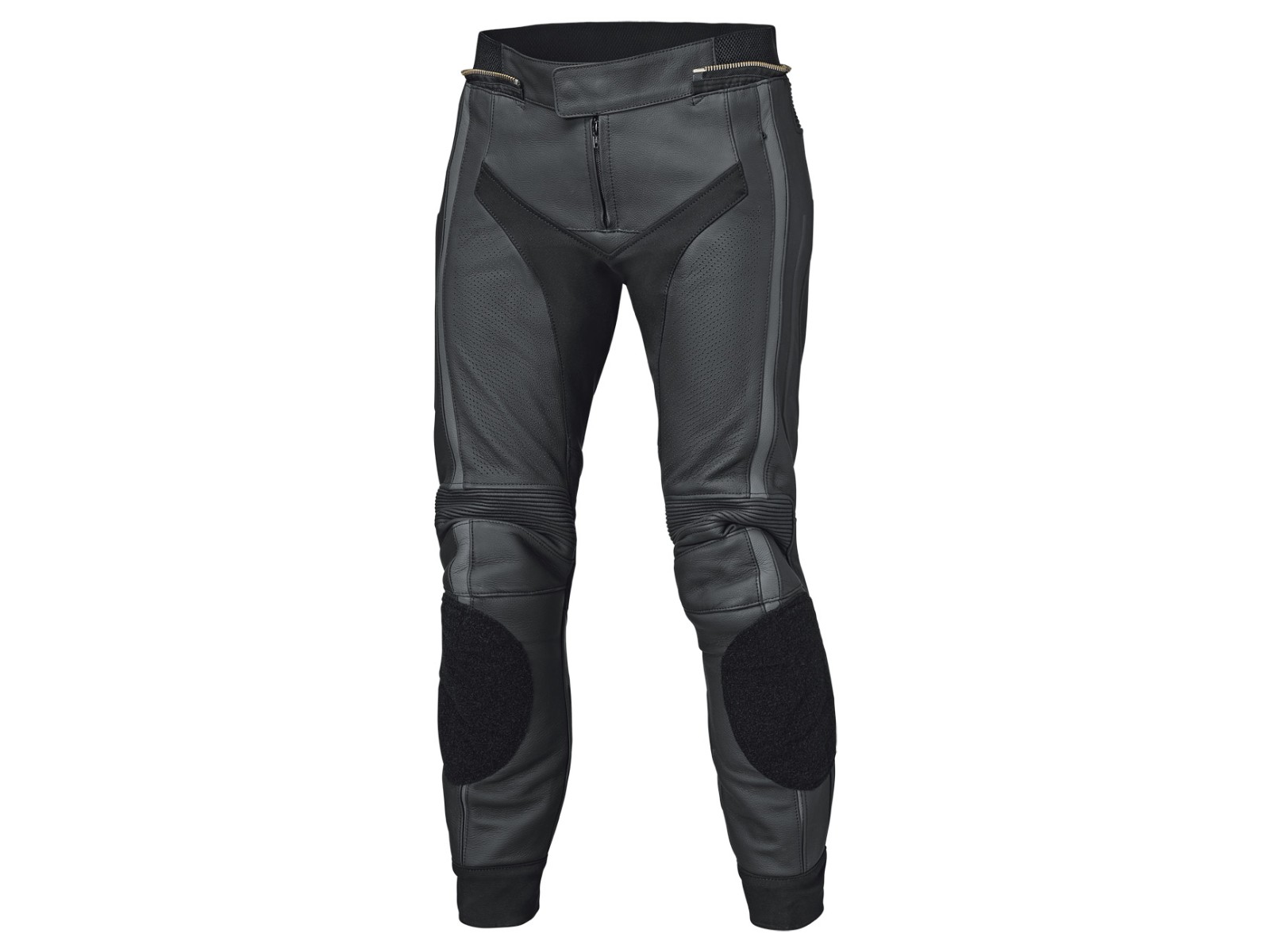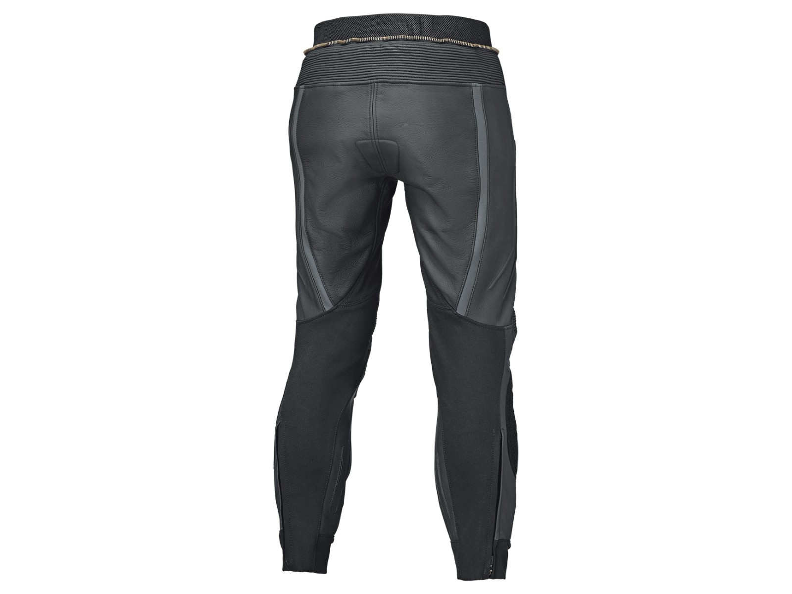 Konstruktion: Sicherheitsnähte und eine Lederdoppelung am Gesäß verstärken kritische Zonen. Ein Metall-Verbindungsreißverschluss koppelt Jacke und Hose sicher.