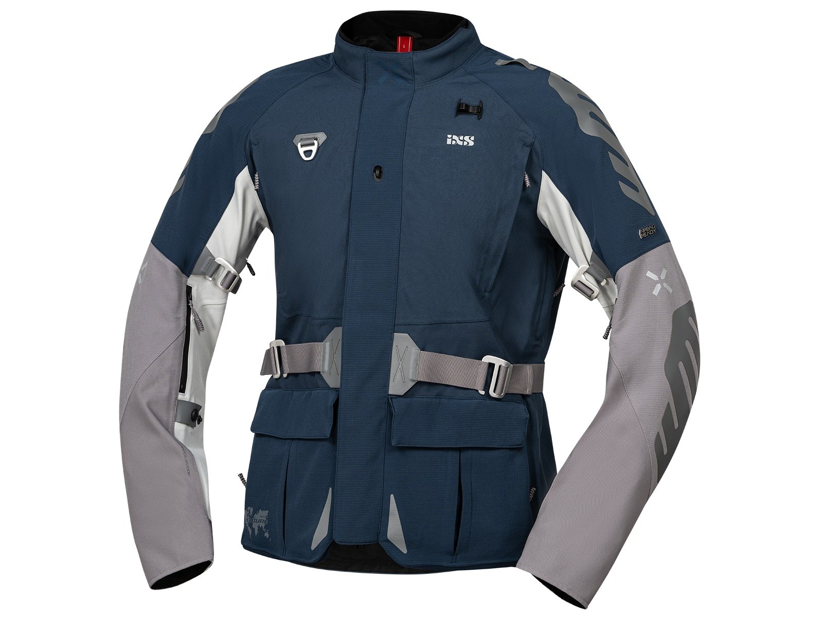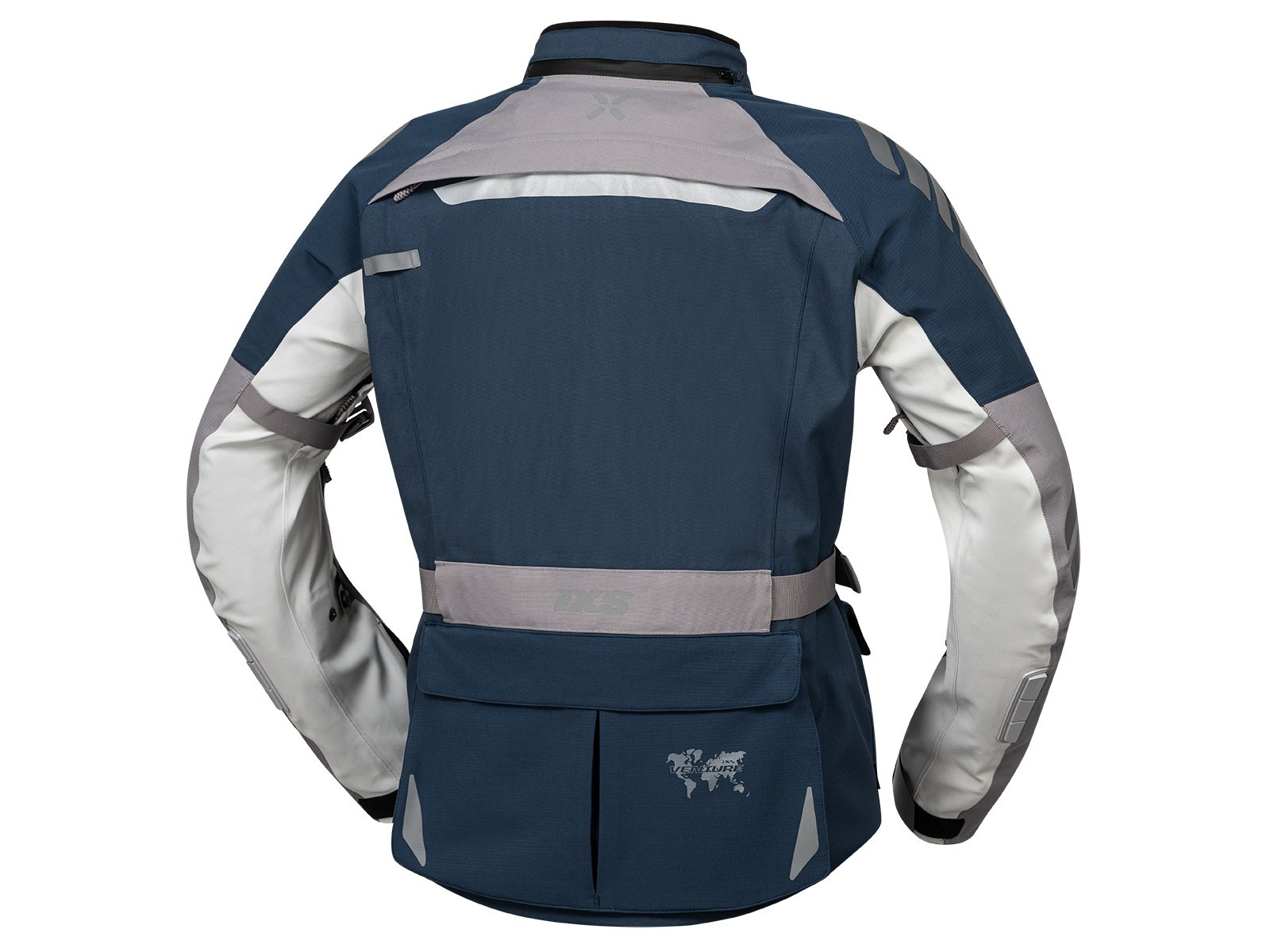 IXS Venture-STX Motorradjacke, hellgrau-blau : Die neue laminerte Motorradjacke von IXS bietet optimalen Wetterschutz bei dem täglichen Pendeln oder bei ausgedehnten Motorradtouren. Für ausreichende Belüftung sorgen Belüftungsöffnungen an Brust, Seite und Ärmel und für längere Regenfahrten ist die Jacke mit einer im Kragen integrierten Sturmkapuze ausgestattet.