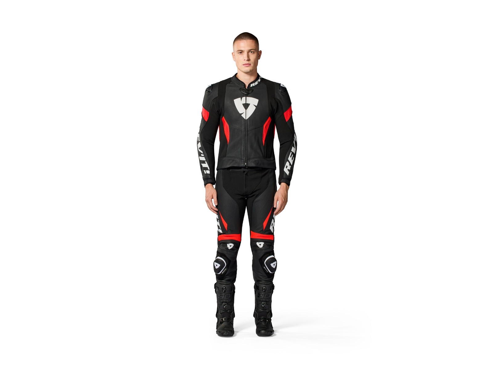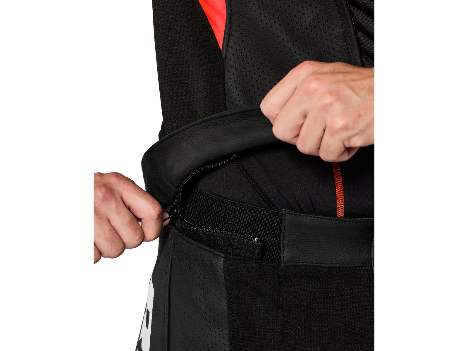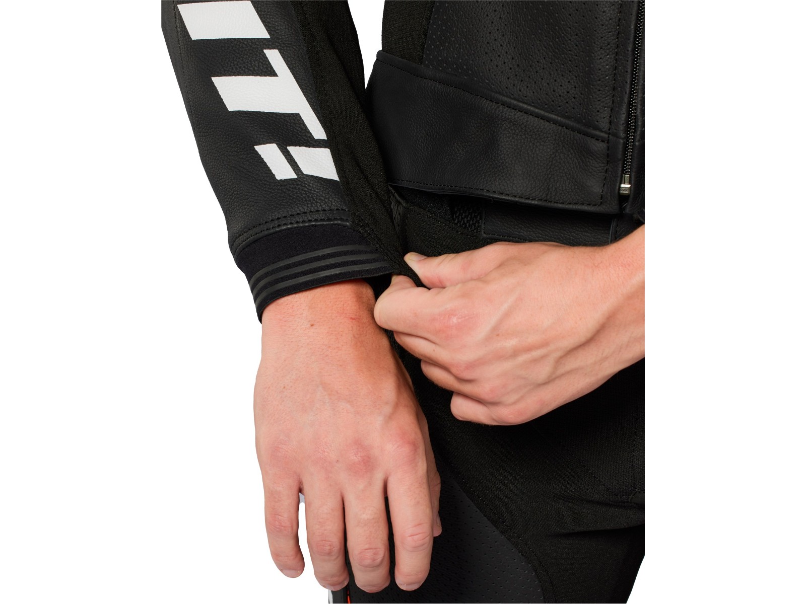 Perforation: Großflächige perforierte Ledereinsätze an der Front sowie Belüftungspanels an Unterarmen, Rücken und Oberschenkeln.