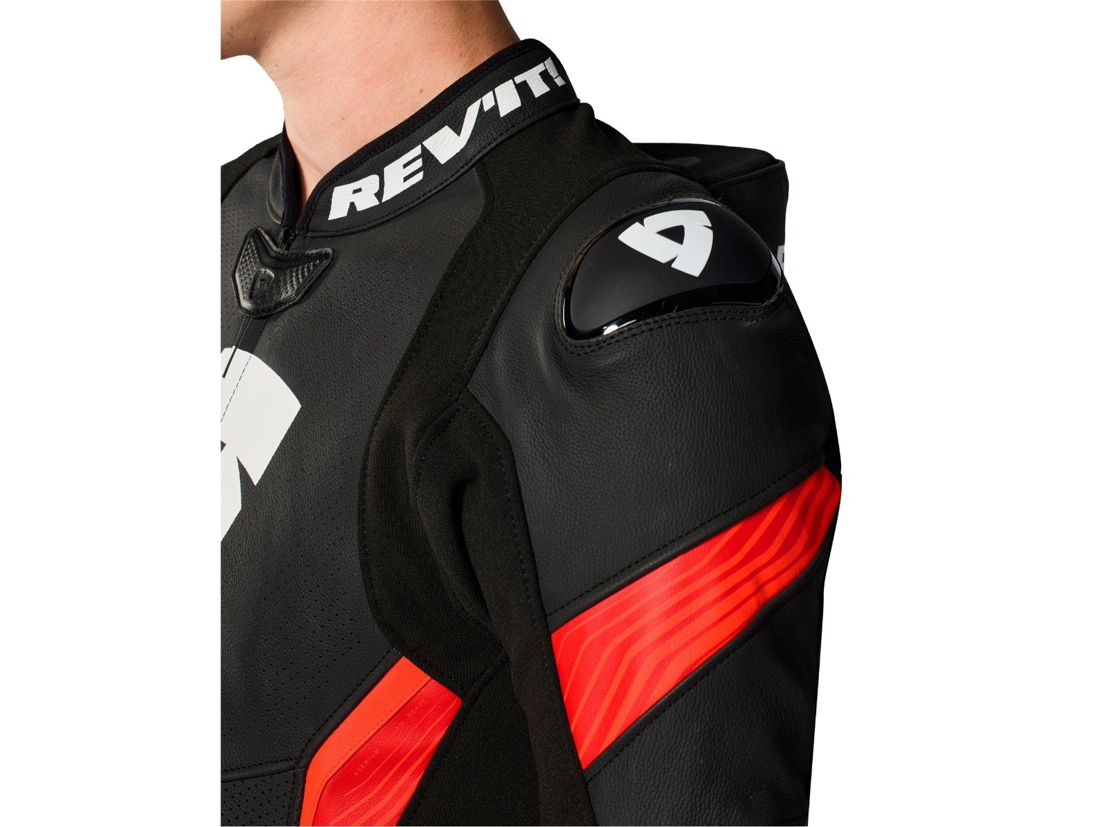 TPU-Schleifer: Externe Hartschalen-Protektoren an den Schultern unterstreichen den Racing-Look und sorgen für besseres Gleitverhalten im Falle eines Sturzes.